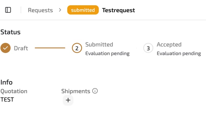 3. Once your request is accepted, you can share the tracking link with us. Click on the + under “Shipments” and fill out the Pop-up. Please make sure